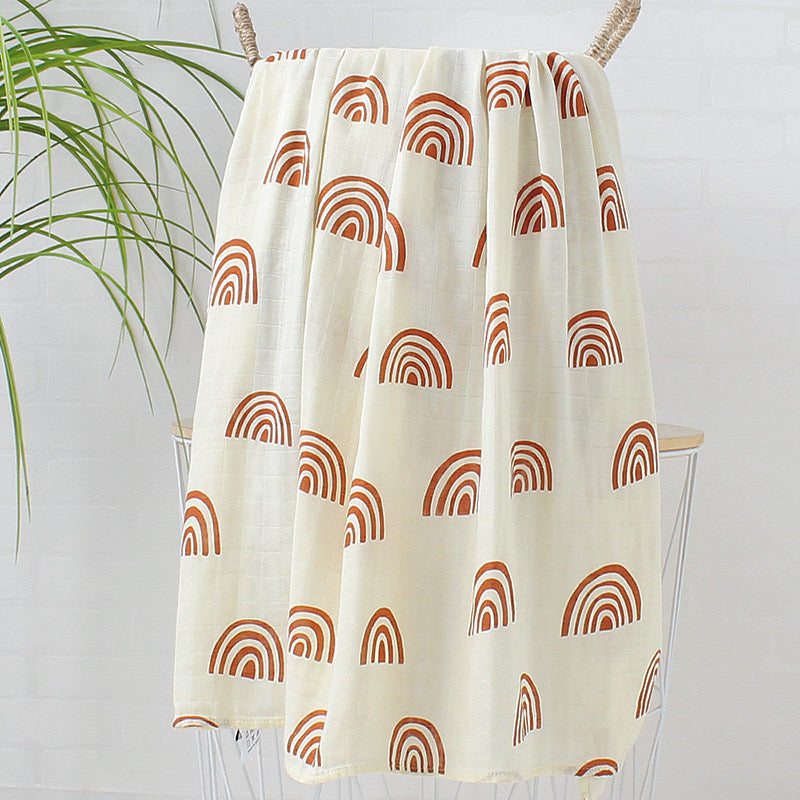 Organic Bamboo Cotton Baby Muslin Swaddle – Rainbow Summer Design (47x47 inch) 🌈🍼